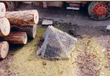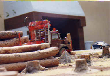 die Maßstab getreue Größe. Die Baumstämme und Stümpfe sind Tannenholz